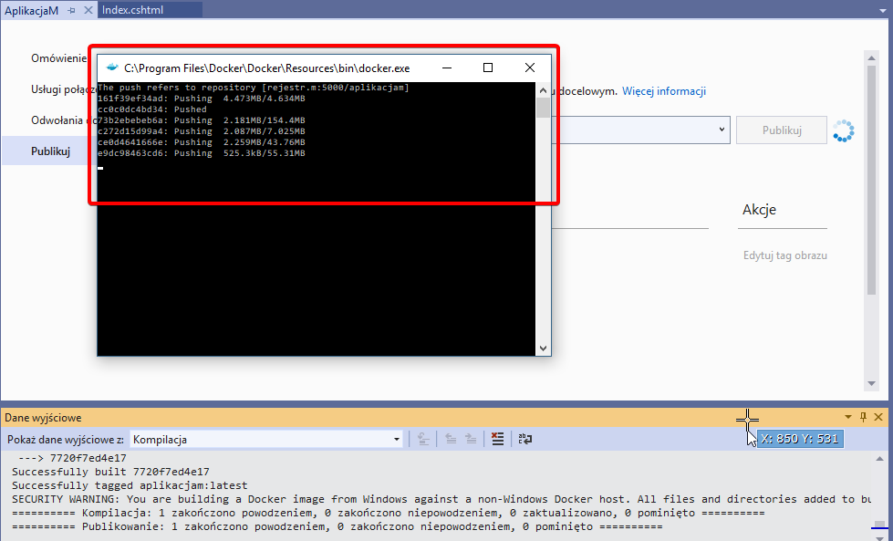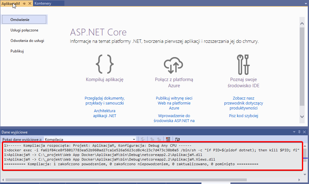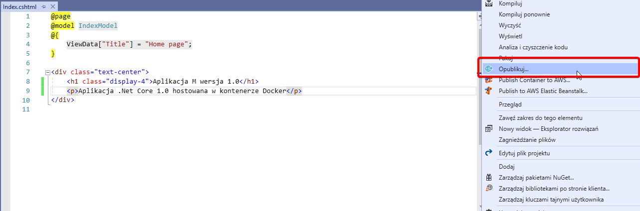 Do tej pory wszystko zrobił za nas kompilator Visual Studio. Teraz zobaczymy jak samodzielnie opublikować aplikację na platformę Docker.