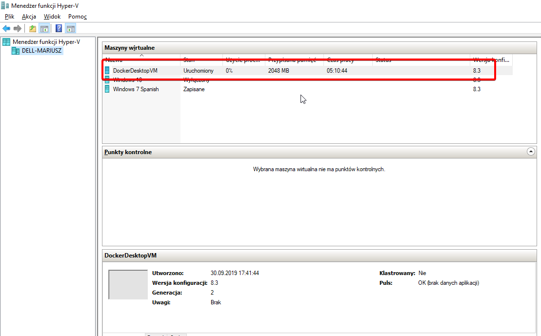 2. Zainstaluj Dockera. Docker utworzy w Windows wirtualną maszynę w Hyper-V. Dlatego Desktop Docker wymaga wersji Windows, która posiada rolę Hyper-V, np. Windows 10 Professional.