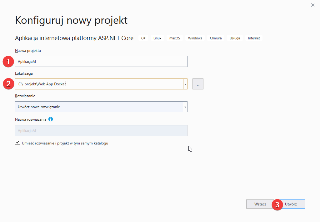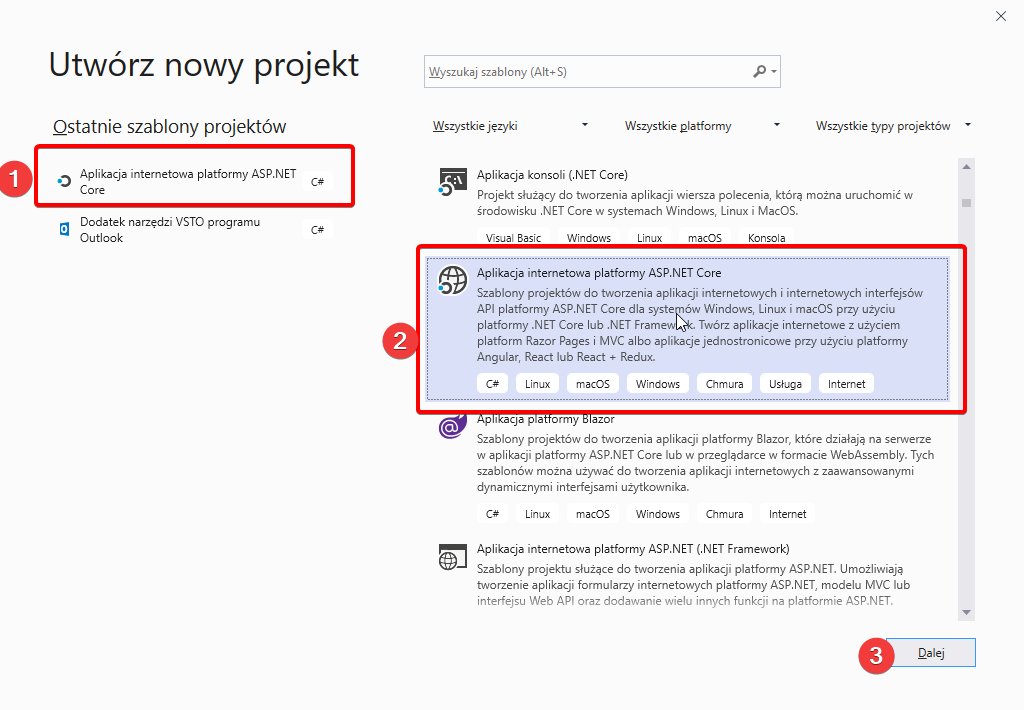 Tworzenie aplikacji .NET Core w Visual Studio 2019
